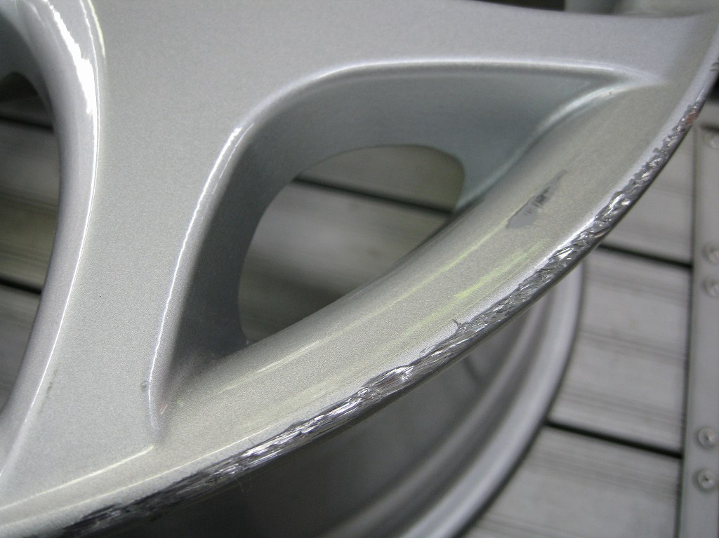 リム面(ホイール表面外周部)のみ修理対象となります。メッキと似ていますが、下地が銀色であればアルマイトです。黒や赤茶色であればメッキ加工の可能性が高いです。
